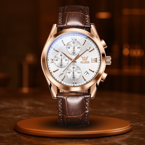 Het nauwkeurige kwartsuurwerk garandeert een exacte tijdmeting, terwijl de multifunctionele weergave en de chronograaf niet alleen stijl toevoegen, maar ook structuur. De 3 ATM waterdichtheid zorgt ervoor dat je controle hebt in elke situatie – zonder je elegantie te verliezen.