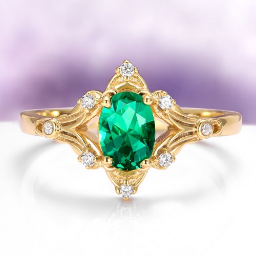 A stunning 925 solid sterling silver with 14k yellow gold finish band featuring a vibrant emerald gemstone, showcasing a rich green hue that represents growth, renewal, and everlasting love.