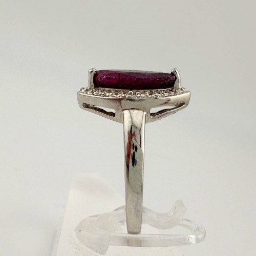 Marquise Cut Garnet & Diamond Ring – Sterling Silver – Size 8