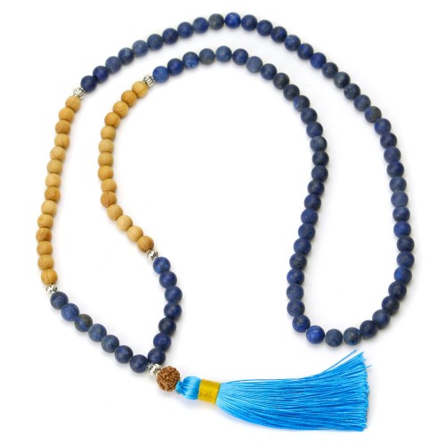Matte Lapis and Sandalwood 8mm Knotted Mala with Silk Tassel #78