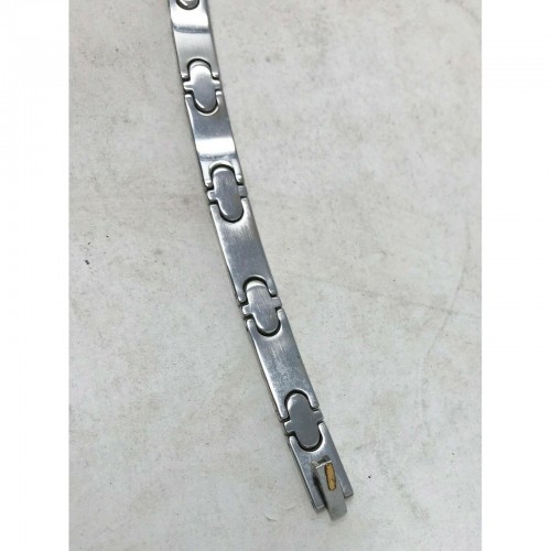 Mens two-tone bracelet. Stainless steel with brass circles. Approx. 8″ long.