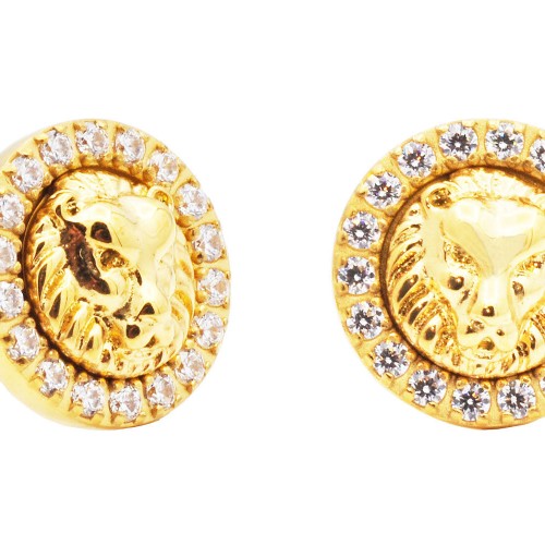 Mens Lion’s Head Gold Stainless Steel Earrings With Cubic Zirconia