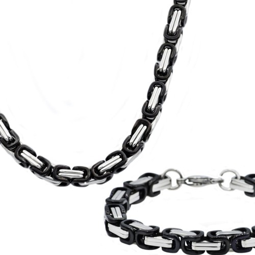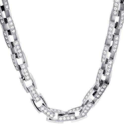 Mens Stainless Steel Square Link Chain Necklace with Cubic Zirconia 24 inch