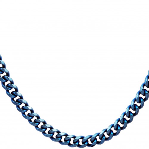 Mens 7mm Blue Plated Stainless Steel Curb 24″ Link Chain Necklace