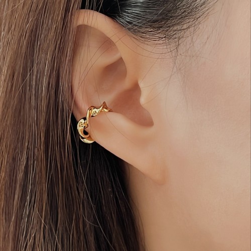 Add an artistic flair with our twisted gold ear cuff. Sleek and striking, this piece of modern jewelry brings a sculptural edge to any look. This cuff, crafted from polished gold-pvd metal, features a sinuous, twisting form that captures and reflects light from every angle. Ideal for those who appreciate bold contemporary accessories, this cuff offers an effortlessly stylish alternative to traditional earrings. Its non-pierced design makes it easy to wear, providing a modern accessory that adds a striking twist to any jewelry collection.