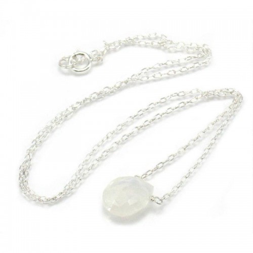 - Moonstone Sterling Silver Necklace with Sterling Silver Spring Ring Clasp