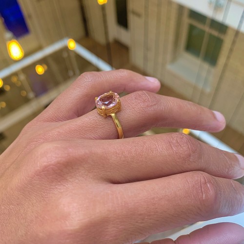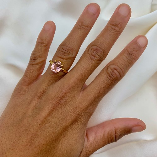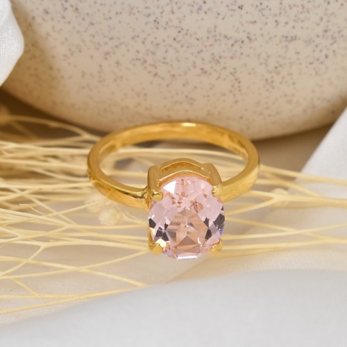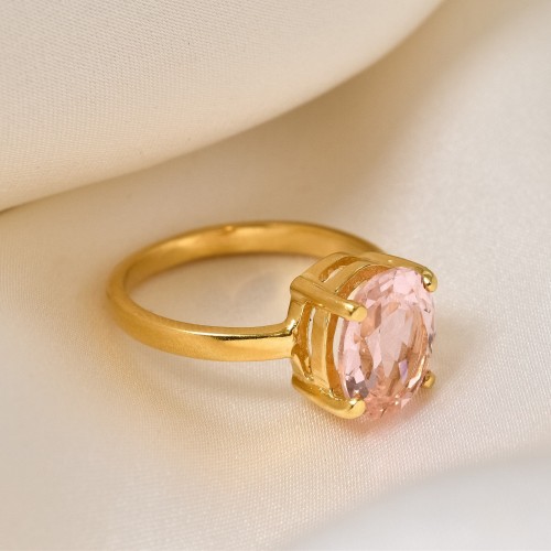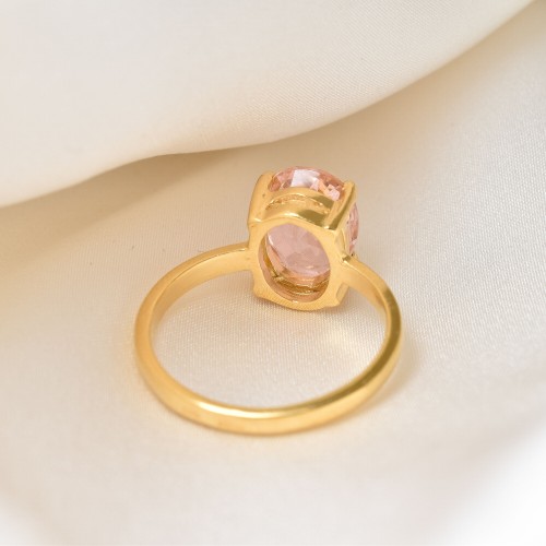 Gold Morganite Ring set with Created Morganite in a diamond cut, flawless clarity & soft pink color, at 10x8mm, 3 Carats.