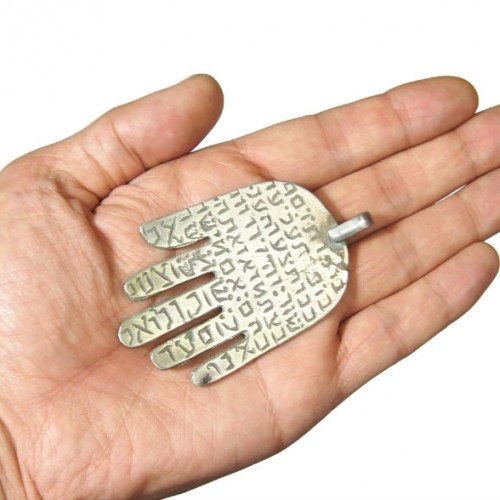 - This particular style of Hamsa is from the town Essaouira. The Hamsa body appears to be cast 800 Silver (80% Silver Content) which was then hand finished and stamped with a pattern. The stamped Hamsa then received a Hand Totem, which was cast in 92.5 Sterling Silver, and soldered on to the 800 Silver base. This addition to the Hamsa base accounts for the discoloration surrounding the Totem.