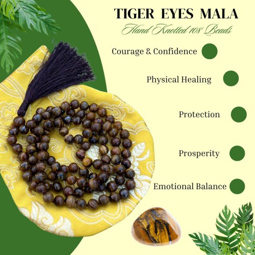 Natural Tigers Eye Hand Knotted Mala, Rosary Necklace 108 Beads #LV7335 6mm Beads