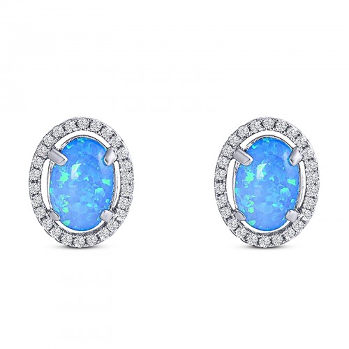 New Design Stud Earring Lab Created Marquise Blue Opal Solid 925 Sterling Silver (13.2mm)