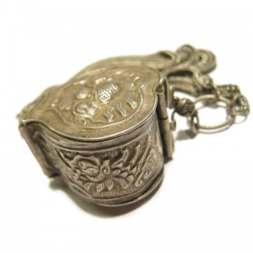 - Northern Vietnam Hill Tribe Tobacco Box on a finely braided “snake chain” circa Mid 20th Century