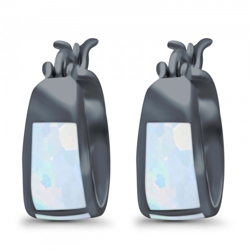Emerald Cut Halo Hoop Earring Black CZ 925 Sterling Silver 17mm
