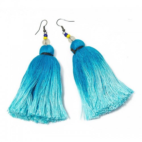 Ombre Tassel Hilltribe Earrings, D