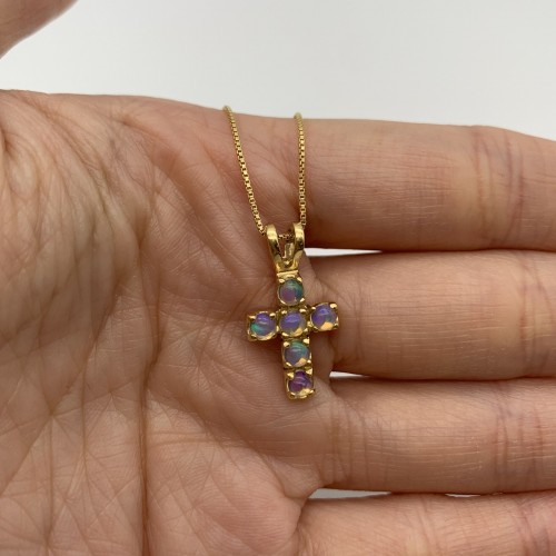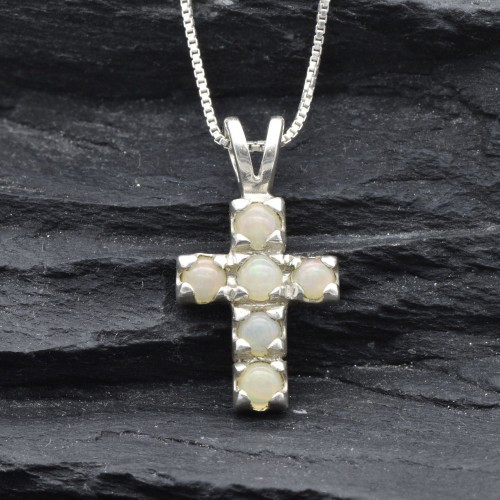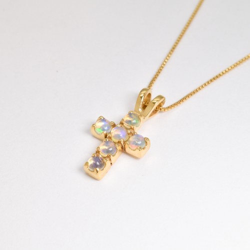 Opal Cross Pendant – Natural Opal Necklace – October Birthstone Necklace
