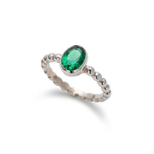 Oval Emerald Ring set with a Created Emerald in a perfect diamond cut, clarity & deep green color, at 8x6mm (2 Cts).