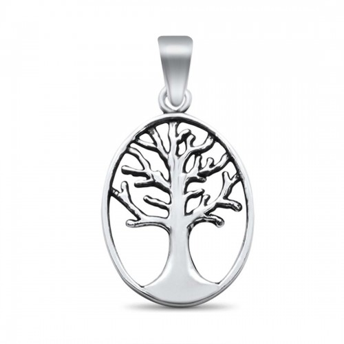Oval Tree of Life Pendant Charm Solid 925 Sterling Silver
