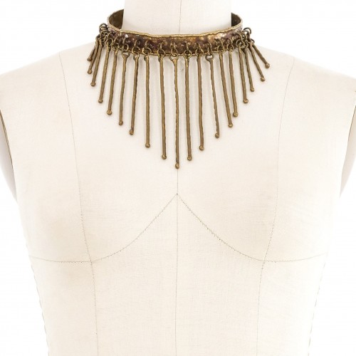 - Brutalist brass collar necklace with kinetic graduated wire fringe