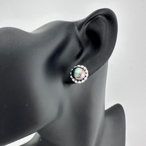 Peacock Pearl Halo Stud Earrings