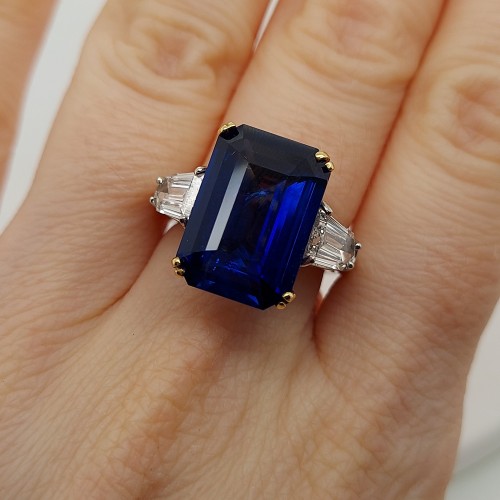 Pear Shape Green Emerald & Pear Shape Blue Sapphire Diamond Ring