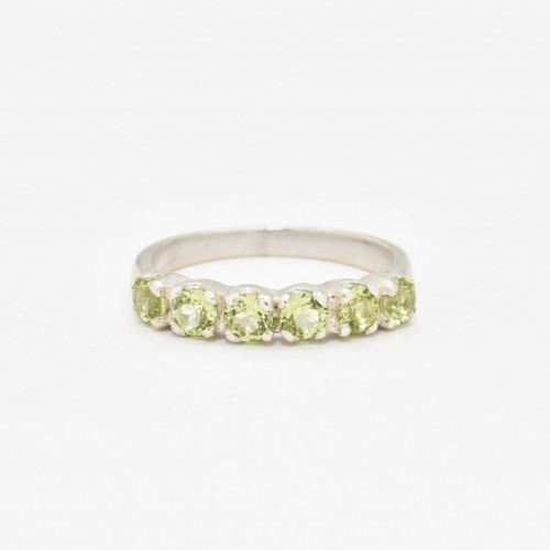 Peridot Half Eternity Ring set with Natural Peridots in a diamond cut and natural green color, at size 3mm each (1 Ct combined) from Brazil.