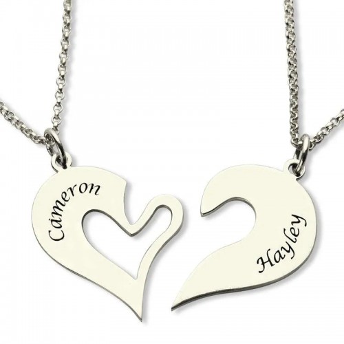 Personalized Breakable Heart Name Necklace for Couples Silver