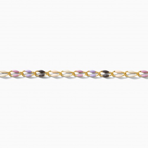 Pink, purple Valentine’s Day enamel chain unfinished.