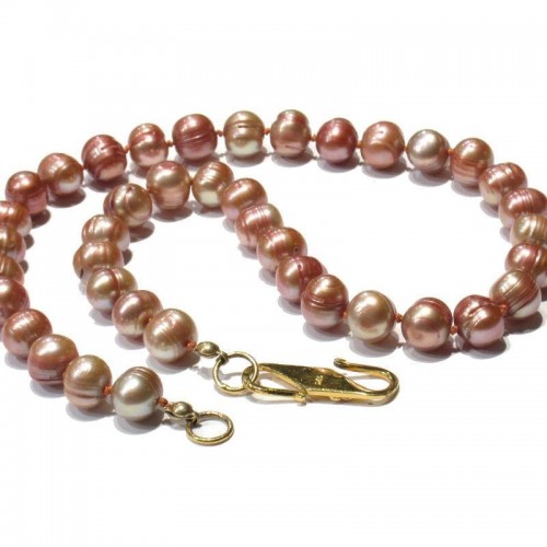 Pink Fresh Water Pearl Knotted Necklace with Gold Plated S Hook Clasp