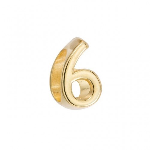 Regaliz Number Slider Bead, for Oval Leather Cord ‘6 or 9’, Gold Plated (1 Piece)