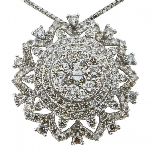 Pt850 K18WG Diamond Pendant Necklace Silver Platinum