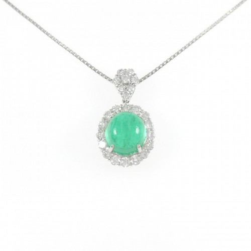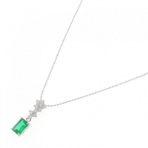 Pt900 K18WG Emerald Diamond Necklace Green Platinum
