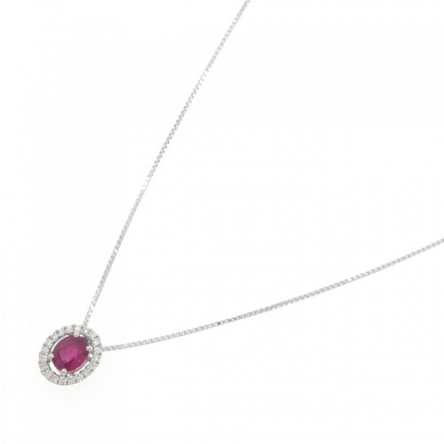 Indulge in the timeless elegance of this Pt900 K18WG Ruby Necklace. The vibrant ruby, accented by delicate diamonds, adds a touch of sophistication to any ensemble. Crafted with exquisite detail, this necklace is perfect for adding a subtle sparkle to your everyday style or a special night out. A refined treasure to cherish for years to come.
