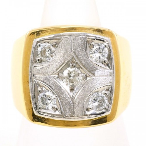 Pt900 K18YG Diamond Ring Silver Platinum