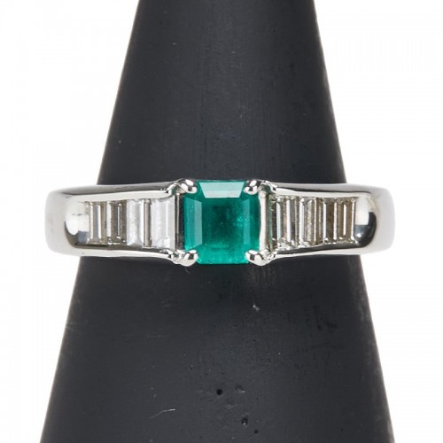 Item name : Pt900 Platinum Emerald Diamond Ring
