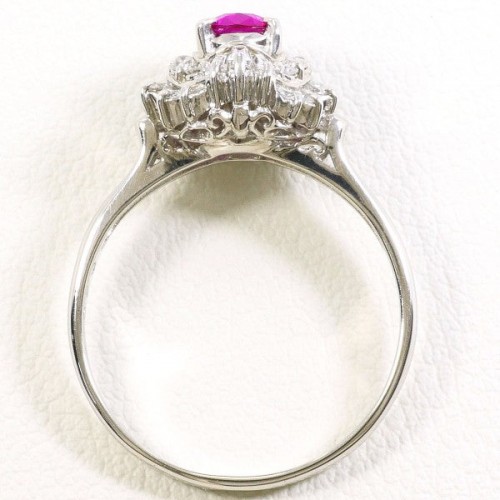 Indulge in timeless elegance with this PT900 platinum ring, featuring a vibrant ruby embraced by dazzling diamonds. A sophisticated statement piece designed for everyday wear, this ring effortlessly complements your established style and adds a touch of understated luxury to any occasion.