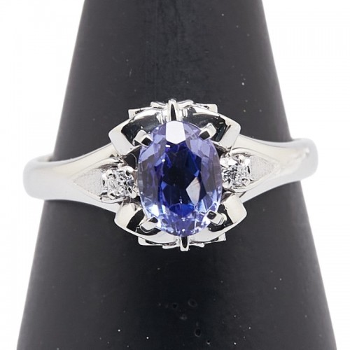 Pt900 Platinum Tanzanite Diamond Ring Silver