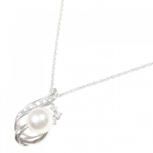 PT900 PT850 Akoya Pearl Diamond Necklace Silver Platinum