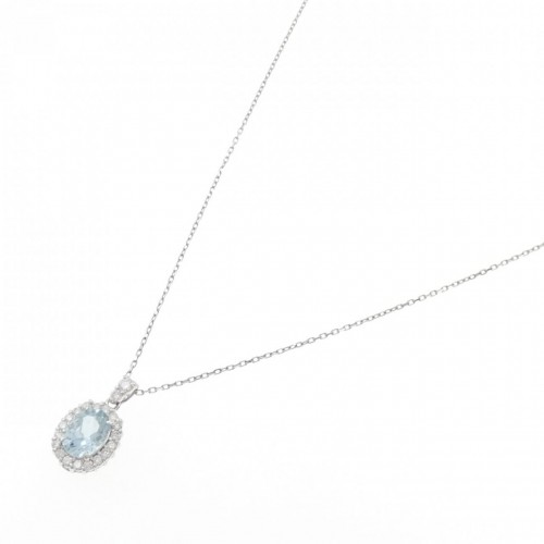 Pt900/Pt850 Aquamarine Diamond Necklace Silver Platinum