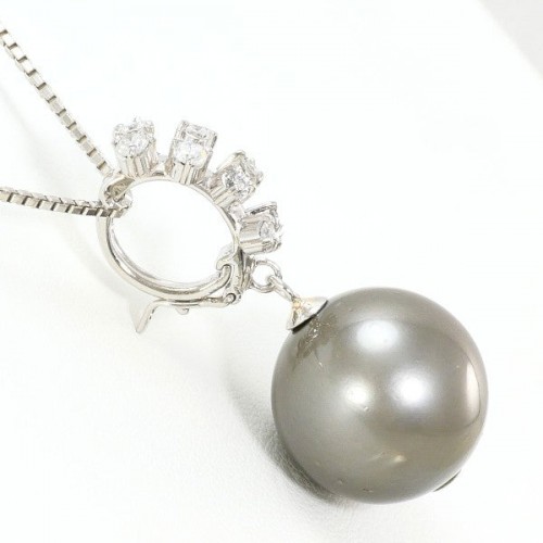 Pt900 Pt850 Black Pearl Diamond Necklace Platinum