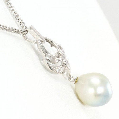 Pt900 Pt850 Black Tahitian Pearl Diamond Necklace Silver Platinum