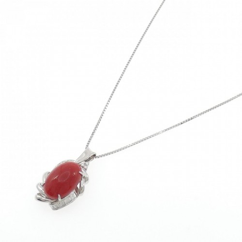 Item name : Pt900/Pt850 Coral Diamond Necklace