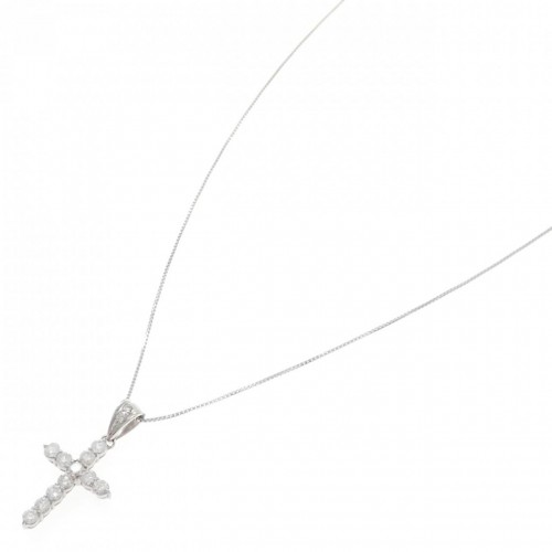 Pt900/Pt850 Diamond Cross Necklace Silver Platinum