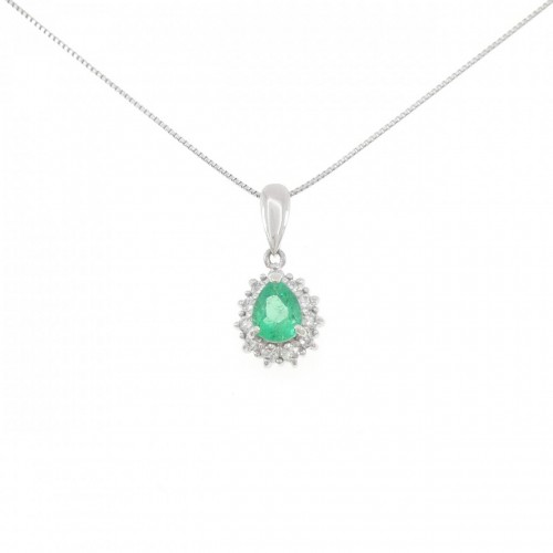 Pt900/Pt850 Emerald Diamond Necklace Green Platinum