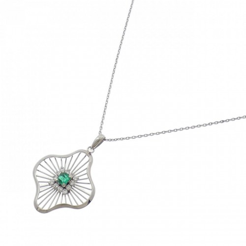 Pt900/Pt850 Emerald Diamond Necklace Green Platinum