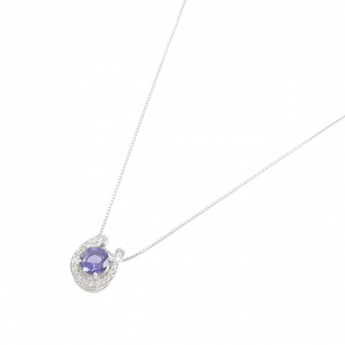 Pt900 Pt850 Iolite Diamond Necklace Silver Platinum
