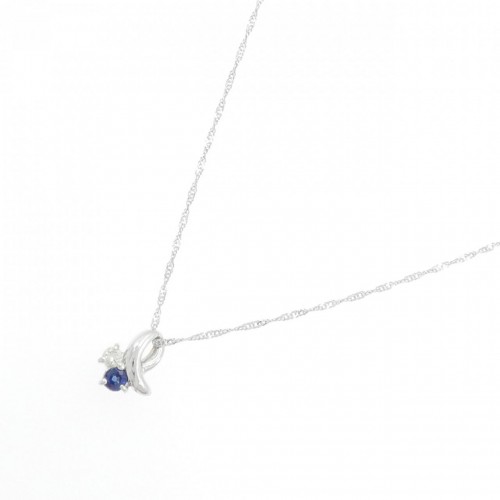 Pt900 Pt850 Sapphire Diamond Necklace Blue Platinum