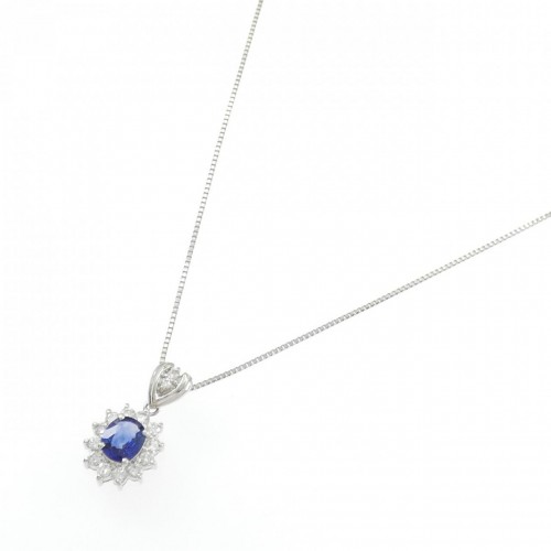 Pt900 Pt850 Sapphire Platinum Necklace Blue