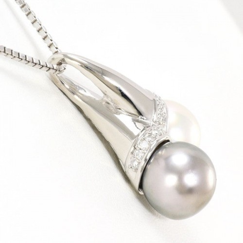 PT900 PT850 South Sea Pearl Diamond Necklace Silver Platinum
