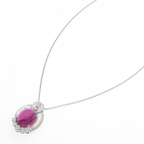 Pt900 Pt850 Tourmaline Diamond Mother of Pearl Necklace Multi Platinum