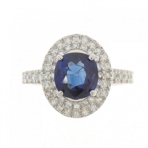 Pt900 Sapphire Diamond Ring Blue Platinum