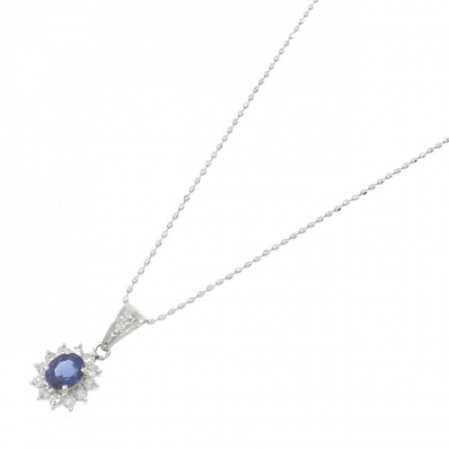 Pt950 Sapphire Diamond Necklace Silver Platinum